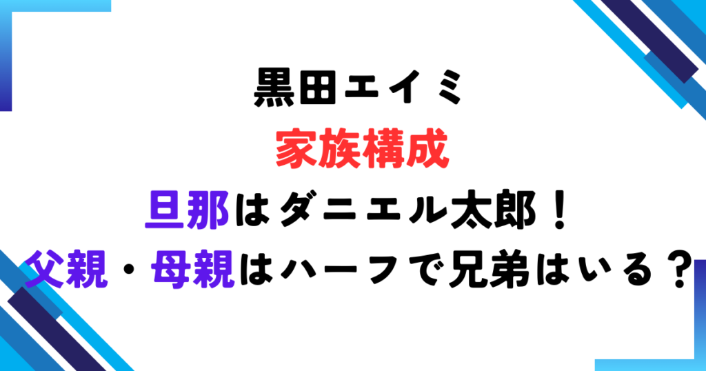 黒田エイミの家族構成|旦那はダニエル太郎!父親・母親はハーフで兄弟はいる?