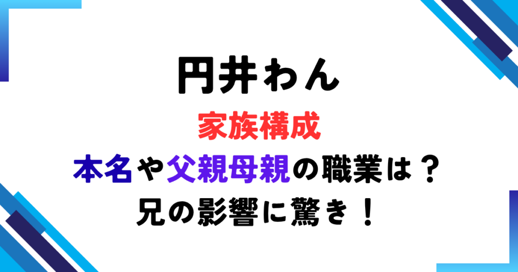 女優として独特の存在感を放つ円井わんさん。 映画やドラマでの個性的な演技に惹かれて、「どんな家族の中で育ったんだろう?」と気になった人も多いはずです。 しかも「わん」という名前の由来もユニークで、調べてみるとご両親やお兄さんとの素敵なエピ... -