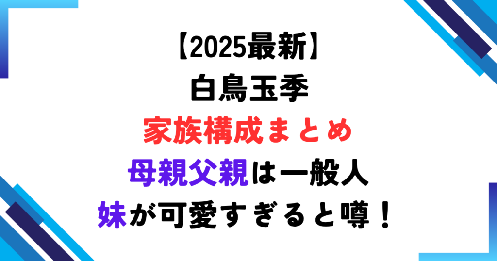 ドラマや映画で大活躍中の若手女優・白鳥玉季(しらとりたまき)さん。 そのナチュラルな演技と透明感あふれる笑顔で、「子役時代からずっと見てる!」というファンも多いですよね。 そんな白鳥玉季さんですが、家族との仲の良さや妹さんの存在が「可愛す... -