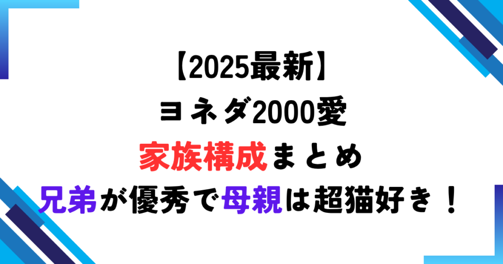 【2025最新】ヨネダ2000愛の家族構成|兄弟が優秀で母親は超猫好き!