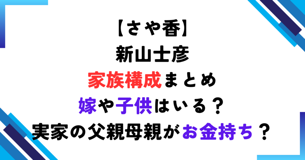 【さや香】新山士彦の家族構成|嫁や子供はいる?実家の父親母親がお金持ち?