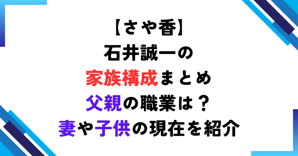 【さや香】石井誠一の家族構成|父親の職業は?妻や子供の現在を紹介