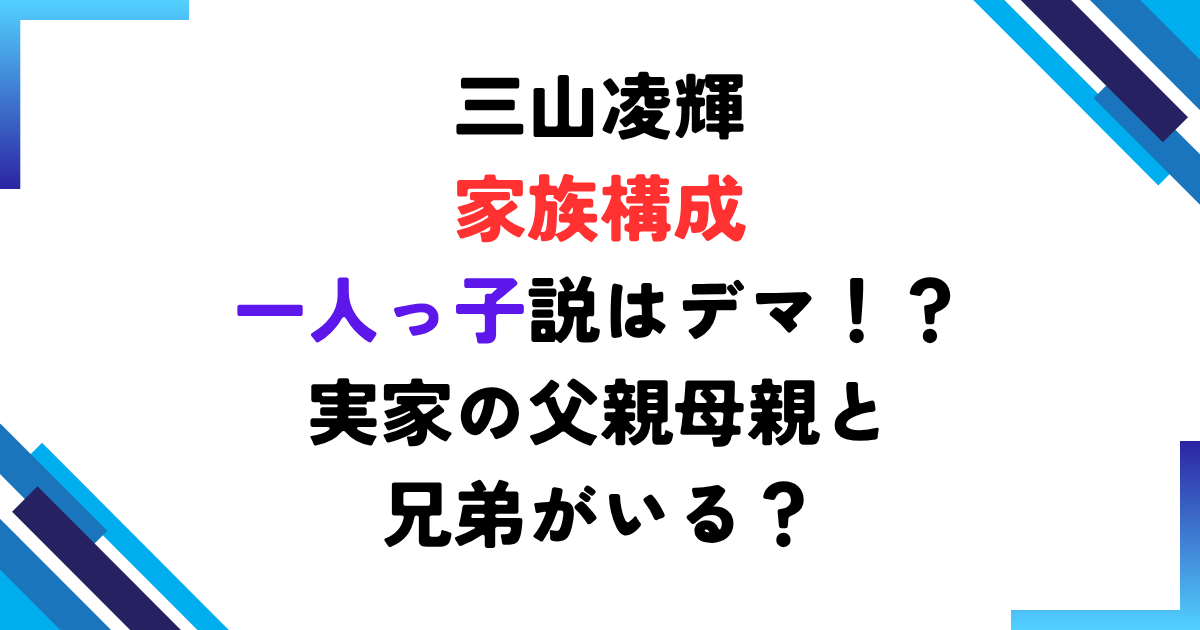 この記事では、三山凌輝さんの家族構成や両親の職業、兄弟の有無、さらに感動のエピソードまで詳しくご紹介します。
