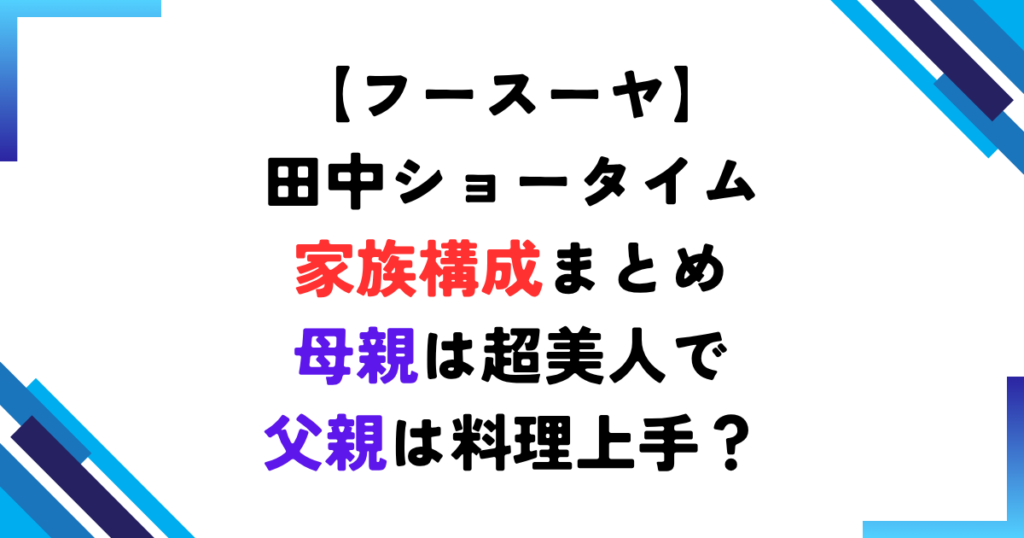 【フースーヤ】田中ショータイムの家族構成|母親は超美人で父親は料理上手と噂を調査